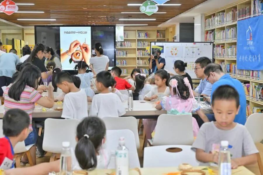 活动现场,20组5-7岁的亲子家庭在领读员老师的带领下,沉浸式走进《从前有个月饼村》的趣味世界,在阅读、品月饼、制作灯笼的过程中感受中秋佳节的独特魅力,传承中华优秀传统文化。